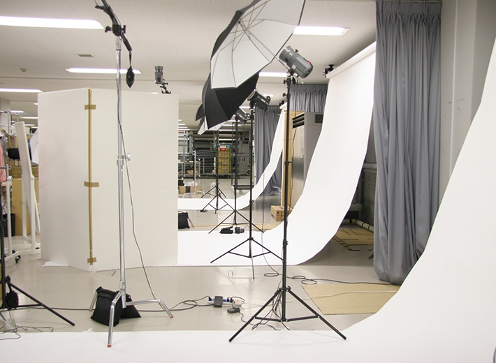 ウェア、シューズ、小物、アクセサリー撮影の為のスタジオです。